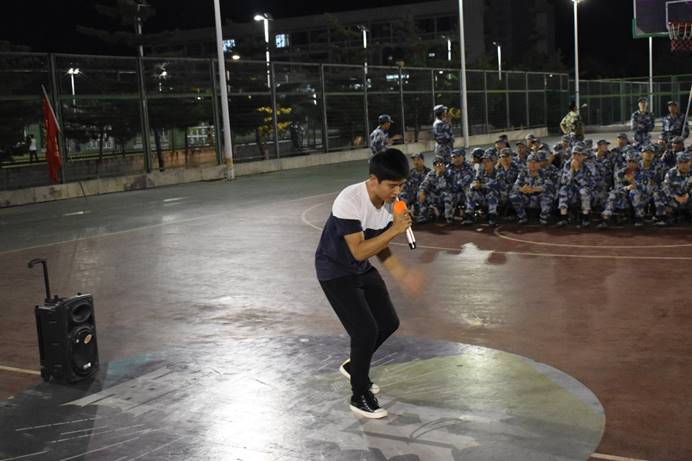 吉他协会的两位小哥哥带来深情的吉他弹唱,悠扬动听的旋律感染了现场同学,把大家的思绪带回到了遥远的家乡;九弦音器乐队的古筝表演,瑟瑟琴声洗涤了夏天的溽热,将同学们带入了安宁祥和的音乐世界;由彭力贤学长带来的独唱《友情卡片》,让同学们深深地记住了这个他们辛苦过拼搏过的夏天;由唐颖萱学姐带来的独唱《去流浪》让每一个因军训疲惫的学弟学妹都瞬间精神振奋起来;黄敏婷学姐为大家带来了独唱《你敢不敢》,学姐以甜美的歌声扫去了军训的学弟学妹们一天的疲惫,同时以有力度的演唱为他们注入了勇气,大家将以勇敢自信的态度,迎接接下来的军训生活以及大学生活。