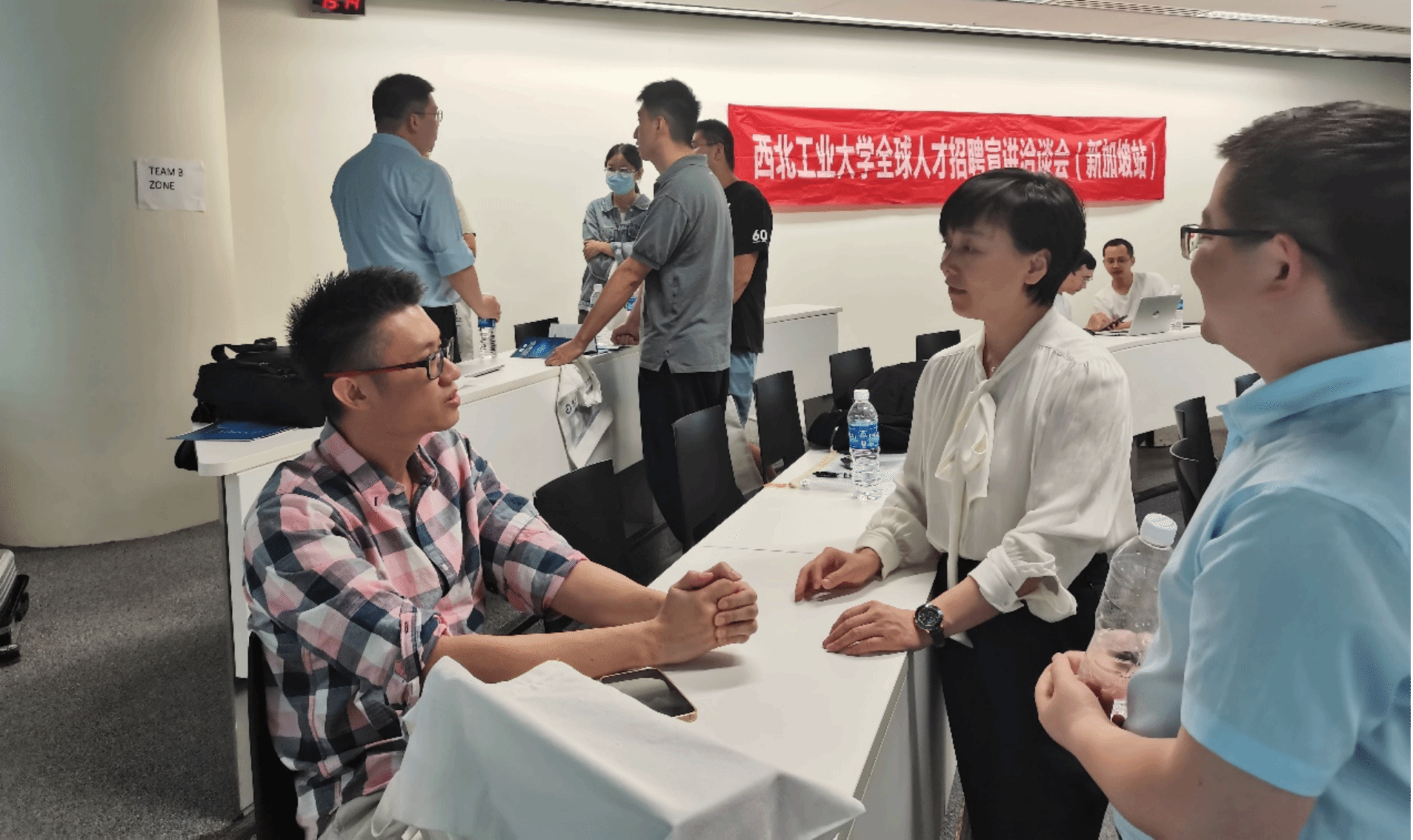 青年教师与参加招聘会学者进行了细致的沟通交流。