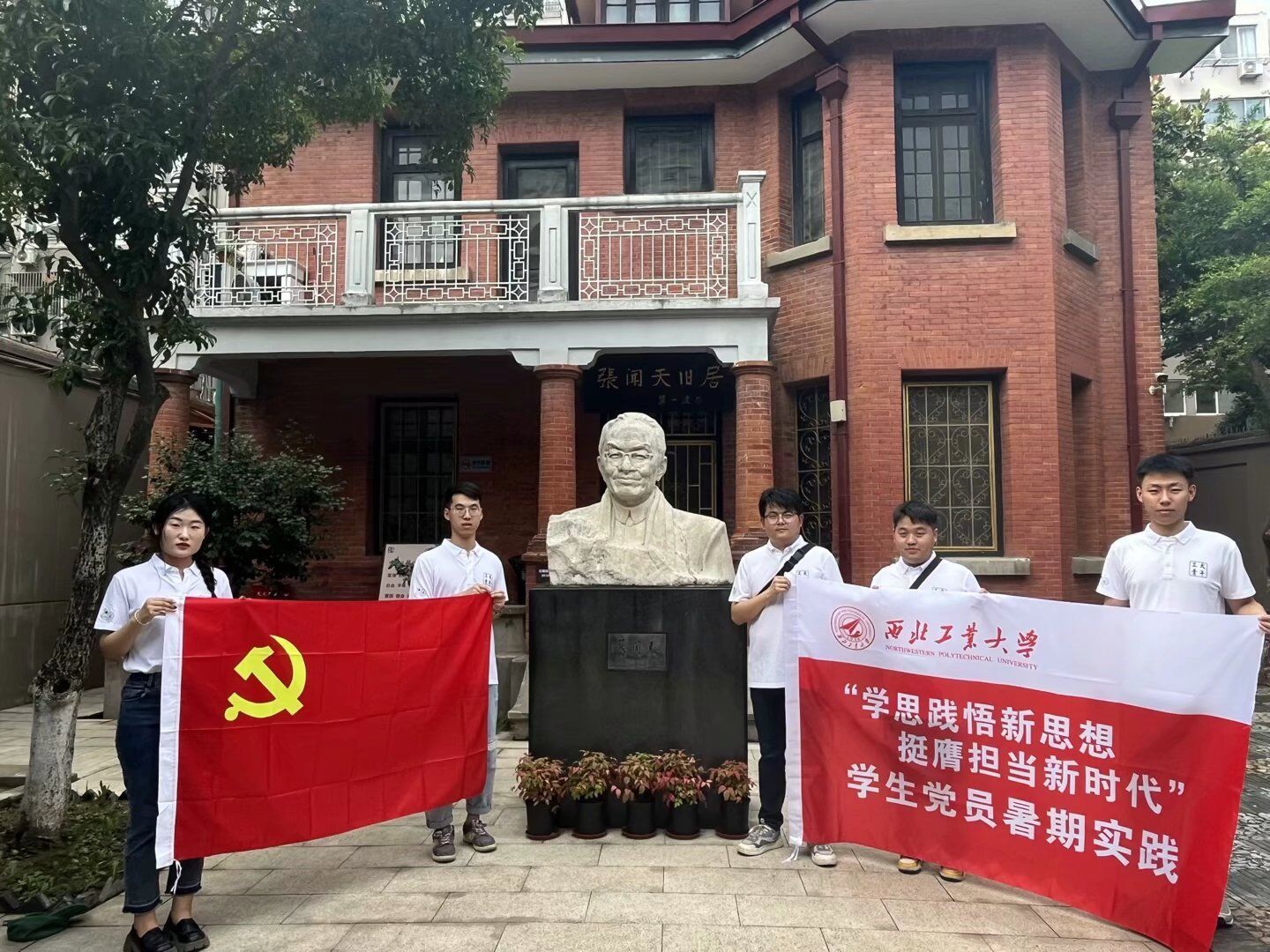 田水沸如汤,背汗湿如泼。在酷暑的夹击下,实践队一行探访了张闻天旧居。张闻天先生是忠诚的马克思主义者、杰出的无产阶级革命家,也是我党在一个相当长时期的重要领导人。漫步在红楼砖瓦之间,实践队员们与张闻天先生进行着跨时空对话,当年“生活的理想,就是为了理想的生活”已然变成现实。看着展示张闻天先生一生经历的实物、文字、图片等,实践队员们对这优秀党员有了更深刻的认识:是在遭受不公正待遇时,他仍坚定马克思主义、共产主义信仰,相信党、相信群众;是在求真求实过程中,他敢于直言,不唯书、不唯上、只唯实;是在为革命理想奋斗终生时,他把全部积蓄作为党费上交,俭朴不为名利。他这种无私奉献的精神和坚持真理的品质深深感染了在场的每一个人,崇敬之情在大家心中油然而生。