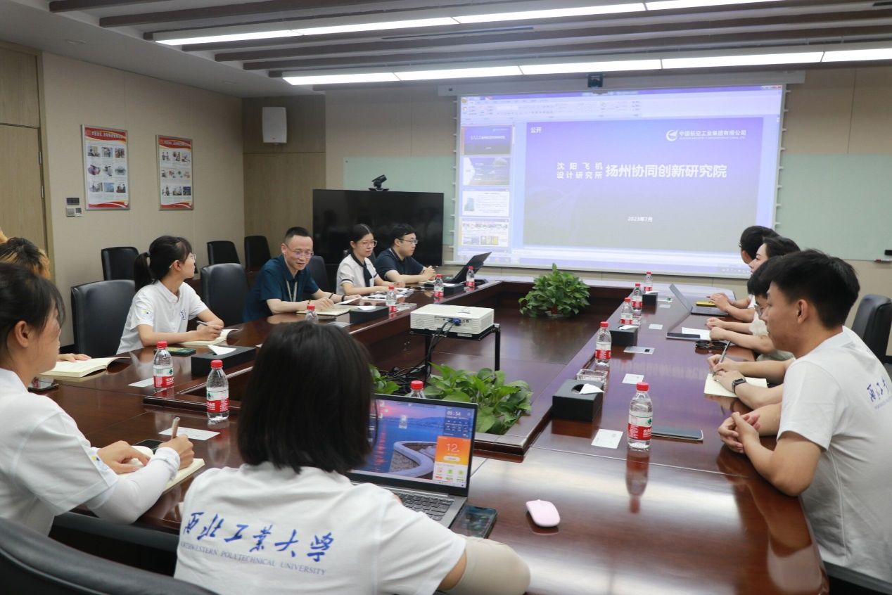青春勇担使命,强国复兴有我。5日上午,实践队一行来到了沈阳飞机设计研究所扬州协同创新研究院(以下简称“扬州院”),与扬州院人力资源总监赵凯、人力资源部部长助理谢雁及相关技术骨干开展了交流座谈活动。