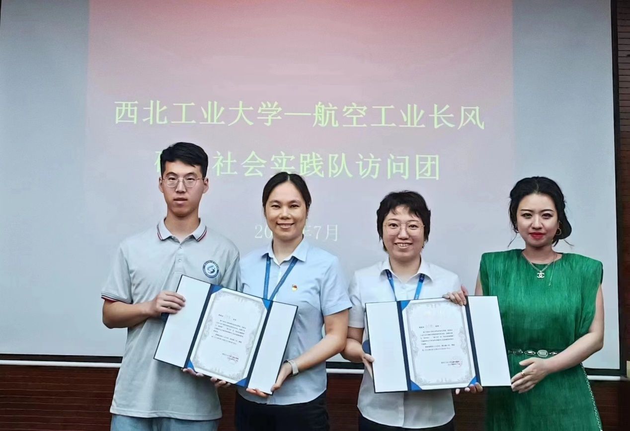 青春火热唯奋斗,立志报国正当时。为培养“立大志、明大德、成大才、担大任”的新时代青年,实践队在周颖老师带领下抵达了航空工业苏州长风航空电子有限公司(以下简称“航空工业长风”)。航空工业长风党委干部部兼人力资源部部长宁佳音、人力资源管理室主任王天娇以及西工大校友、军品研究所预研室主任张锋参加了本次活动。