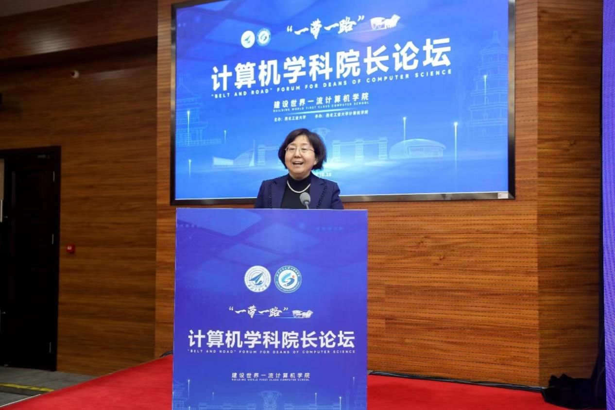 和西工大计算机学科的基本情况,表示西工大脉源三支、百余次创造“中国第一”,厚植“总师”型育人文化,坚持“三航”特色,愿与计算机学科同仁一起加强教育合作、推动学科发展,助力“一带一路”建设,贡献西工大力量。