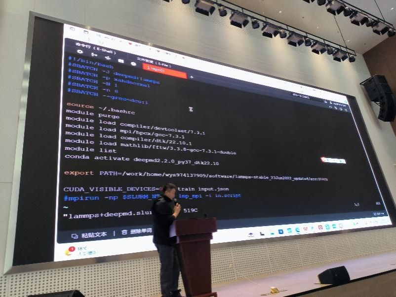 国家超级计算西安中心高级工程师王宁作题为《超算大科学装置的使用培训》报告,他介绍了超算资源、系统运行和应用情况。国家超级计算西安中心高级工程师李博镝和王译晟作了题为《国产加速卡(DCU)特性及编程实操》的培训与实操演示,介绍了DCU的关键技术,包括DCU的特性、DCU资源的查看、编程实例,并以DeepMD为例,现场演示了如何提交和管理典型的AI for Science应用作业。与会同学就自己感兴趣的话题踊跃提问交流。