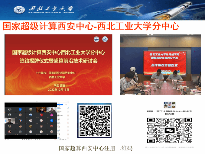 分中心于2022年12月13日正式签约成立,与西工大优势互补、互利共赢,融合校内外超算和智算资源,更好地为全校师生提供持续的科学与工程计算、人工智能计算等服务,促进各学科的发展和交叉复合型人才的培养,特别是为航空宇航科学、材料科学与工程、计算机科学等一流学科提供科研和人才培养的支撑平台。双方共同推动区域经济高质量发展。未来,还将会定期举办培训与交流会。