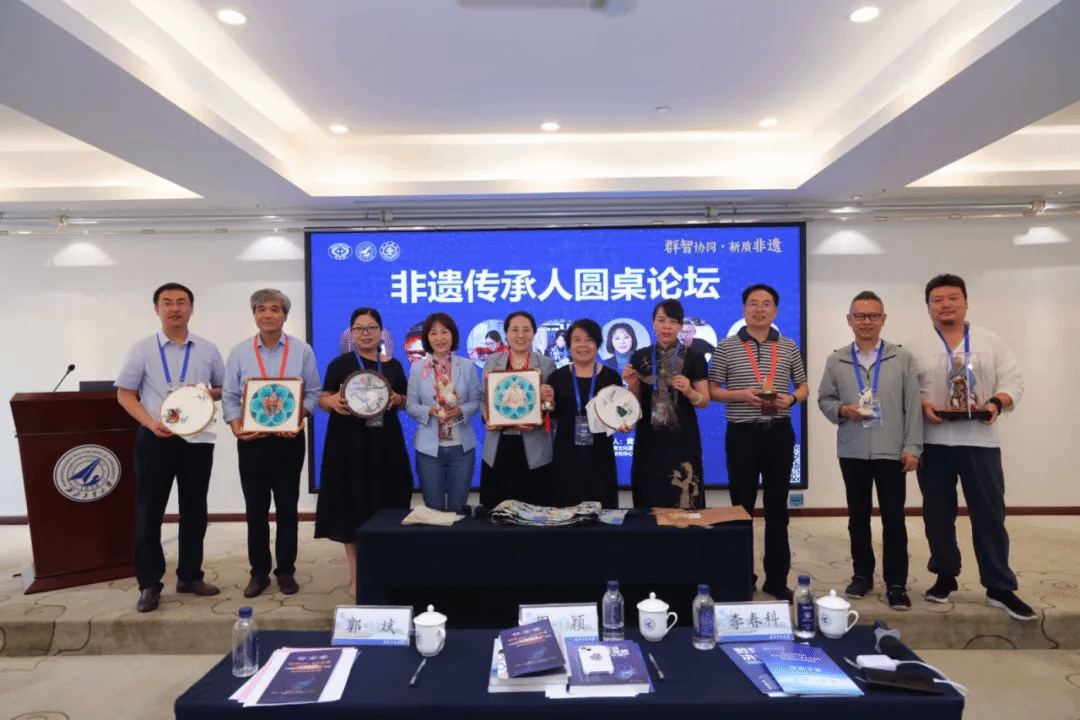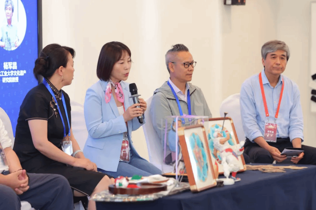 郭斌教授和上海交通大学薛可教授共同主持的非遗传承人圆桌论坛,邀请了陕西省文艺学者瞿石明、皮影传承人汪海燕、面塑传承人张倍源、秦绣传承人崔萌和赵春等,共同探讨非遗的传承与创新。