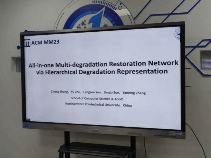 张成的报告题为《All-in-one Multi-degradation Restoration Network via Hierarchical Degradation Representation》。他提出了一种基于层次降解表示的一体化多降解恢复网络,这一网络采用分级从属和树形结构的划分的方法兼顾表征提取与减小梯度冲突,并通过子网络提取退化特征,然后通过进一步计算得出结果。在数据集上的运行结果显示,这一方法在模糊、噪声、低光和散焦等方面都 优于其他 方法。