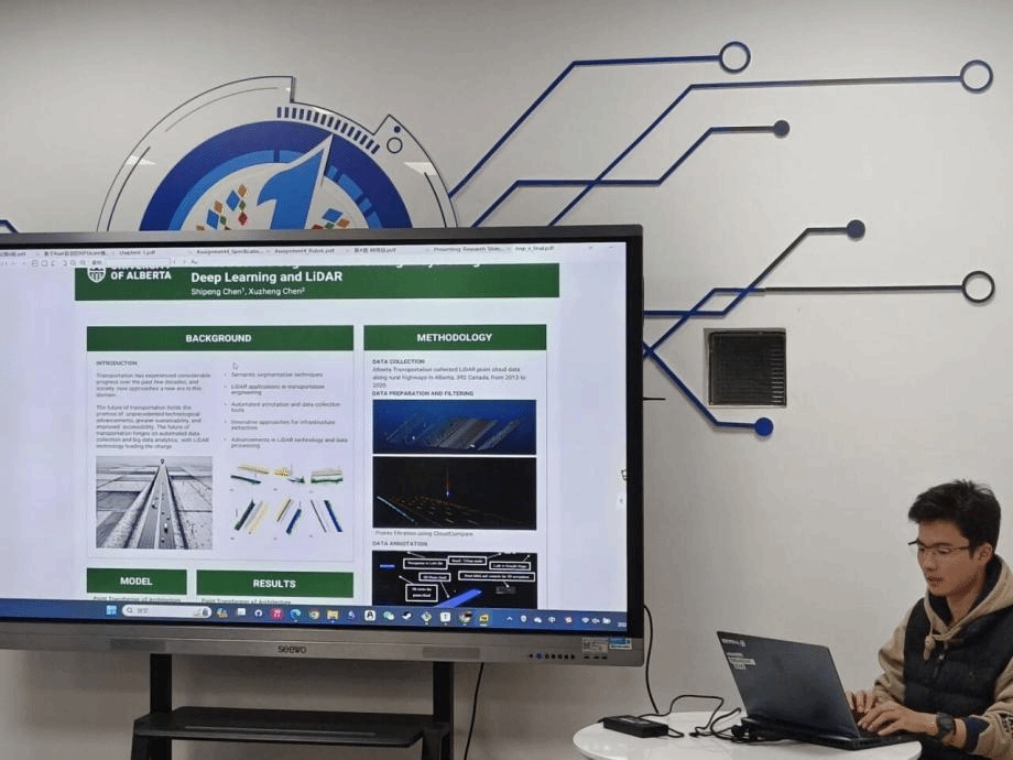 陈诗鹏同学通过国家留学基金委选拔,于2024年7月7日-10月7日赴加拿大阿尔伯塔大学开展科研实习。首先,陈诗鹏针对加拿大阿尔伯塔大学访学的经历做了分享,并结合自身经历,从申请准备、学习生活等方面介绍了自己的经验。最后介绍了实习期间所研究的问题:LIDAR点云图像理解-针对高速公路所拍摄的3D点云图像。