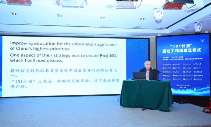 副校长岳晓奎首先肯定了教育部计算机“101计划”西北工作组成立的重大意义,也为西北工作组的未来发展提出了殷切期望。教育部“101计划”工作组组长胡振江从中国高校计算机学科建设的角度,解读了计算机“101计划”的重大战略意义,以及与拔尖创新人才培养的紧密联系。陕西省计算机学会理事长周兴社表示陕西省计算机学会未来将作为“101计划”西北工作组的坚强后盾、为推进其高质量发展提供有力支持。陕西省计算机教育学会理事长耿国华聚焦一流课程建设和计算机通识教育实践,分享了区域教育发展的经验与思考。