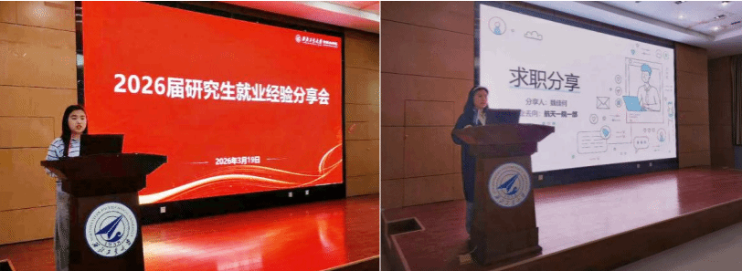 在新报告厅举办2026届毕业生就业经验分享会,邀请同届硕士毕业生魏佳何、卫嘉丽、李璐池、潘成宇及本科毕业生杨裕平,为日韩av