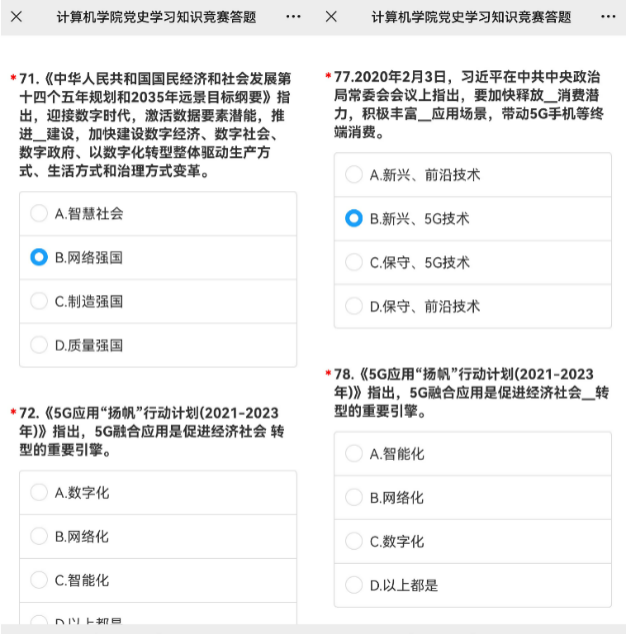 开展的党史学习答题活动系统地梳理了党的历史上历代领导人在计算机领域的重大部署以及计算机领域从“0”到“1”,从无到有逐渐发展壮大的辉煌历程,同学们备受鼓舞。作为新时代青年,我们更加要坚定理想信念,保持昂扬斗志,奋发有为,积极进取,勇于创新,抓住时代机遇,不忘使命,勇担重担,努力为实现中华民族伟大复兴的中国梦贡献自己的智慧和力量。”
