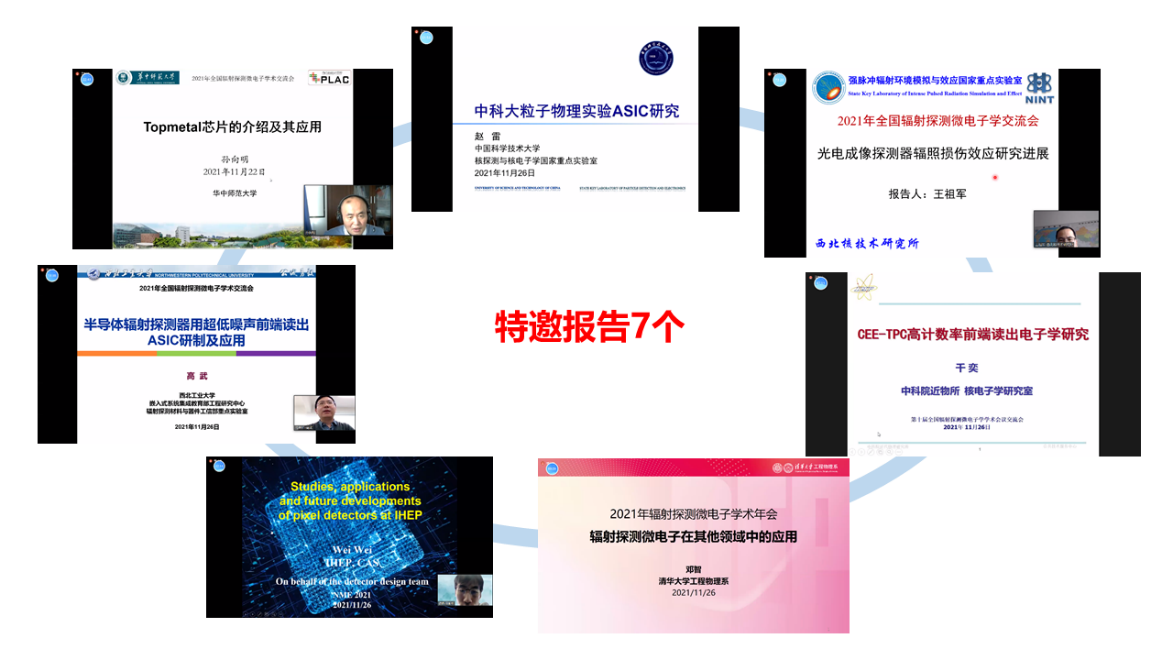 高武代表课题组做了题为“半导体辐射探测器超低噪声前端读出ASIC研制及应用”的特邀报告,总结了过去十年西工大在超低噪声前端读出ASIC芯片的研究和应用成果。中科院高能物理研究所魏微研究员的特邀报告“高能所像素探测器设计、应用和研究进展”,介绍了中科院高能所在环形正负电子对撞机(CEPC)预研项目中的像素探测器研制及像素型读出ASIC的工程应用情况。清华大学邓智教授做了题为“辐射探测微电子在其他领域中的应用”,重点介绍了长波红外探测器读出芯片研制及应用。中科院近物所千奕研究员的特邀报告“CEETPC高计数率前端读出电子学研究”,介绍了核物质测量谱仪时间投影室电子系统设计及对ASIC的需求。