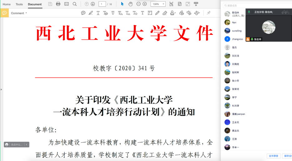 其次,陈伯林同志带领参会教师,系统学习了一流本科人才培养行动计划30项重点工作。这30项内容分别围绕坚持立德树人、改革人才培养模式、强化学生指导与评价、建设高水平教学队伍、打造一流教育教学资源、构建开放协同育人格局、加强组织领导等七个方面具体展开。