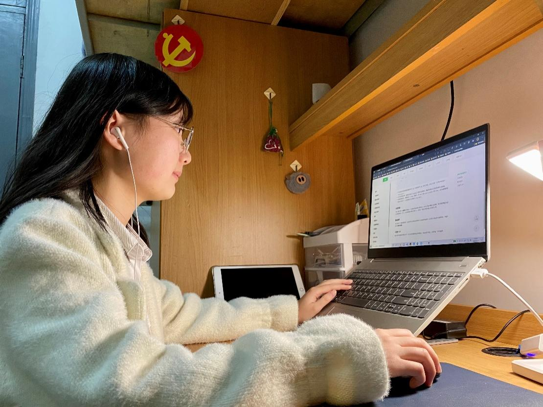 张颖在宿舍上课