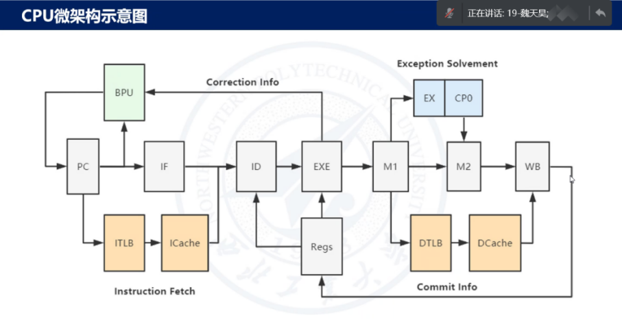 魏天昊介绍了其团队参加“龙芯杯”大赛的完整经历,结合比赛流程,生动地介绍了其自研的Genshin CPU的整体设计、基本原理以及功能组件,以及在比赛过程中克服困难与团队协作的点滴瞬间。此外,他还向同学们推荐了几本CPU设计相关的核心书籍,鼓励大家提前为今年的比赛做好准备,再创佳绩。