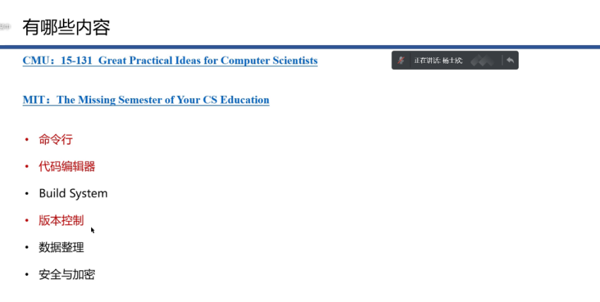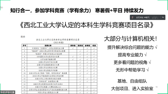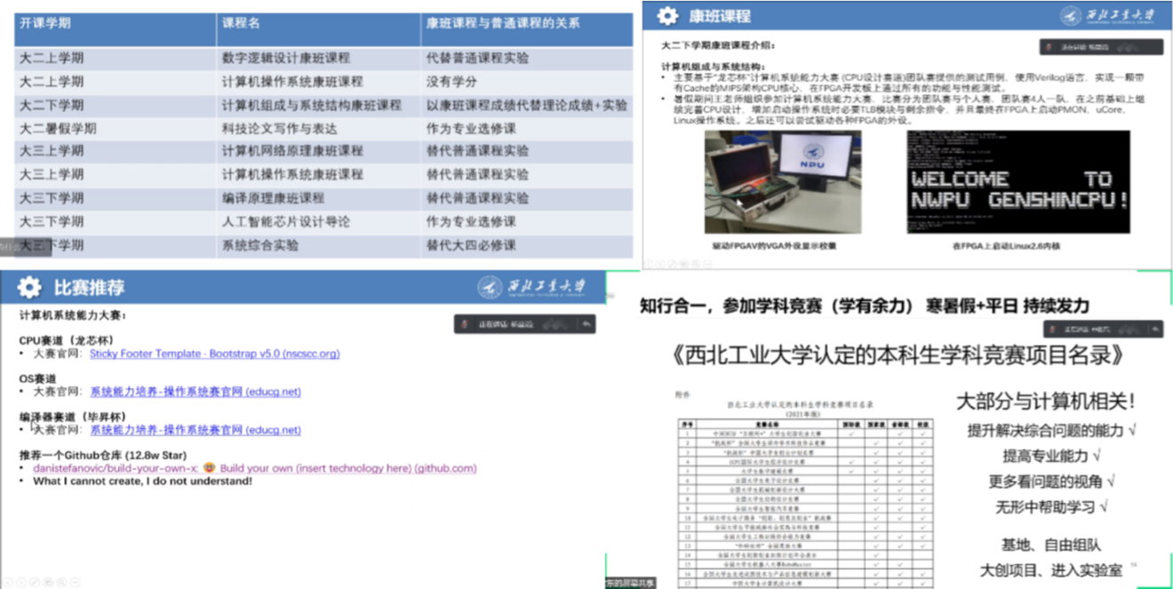 杨益滔向同学们介绍了我校计科相关课程、康班特色课程,并向同学们推荐了数个硬核的计算机系统能力大赛,数门国外知名高校的经典课程,以及大量相关实验和博客资源,干货满满。
