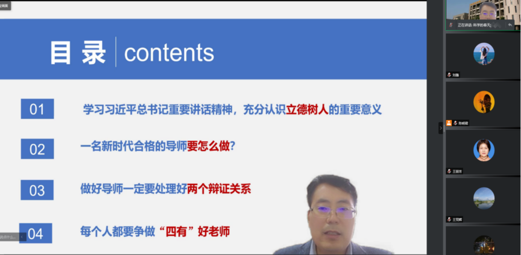为全面贯彻落实习近平总书记对研究生教育工作重要指示精神和全国研究生教育会议精神,推进落实立德树人根本任务,适应我国研究生教育发展的新形势和新要求,加强研究生导师队伍建设,提高导师指导和培养研究生的能力,促进计算机学科一流研究生培养。10月19日下午,李春科书记为全院研究生导师作了题为“立德树人,因材施教 —— 如何做一名新时代优秀的研究生导师”的主题党课。由于疫情防控的需要,本次培训会采用线上形式召开,由日韩av