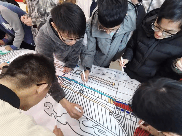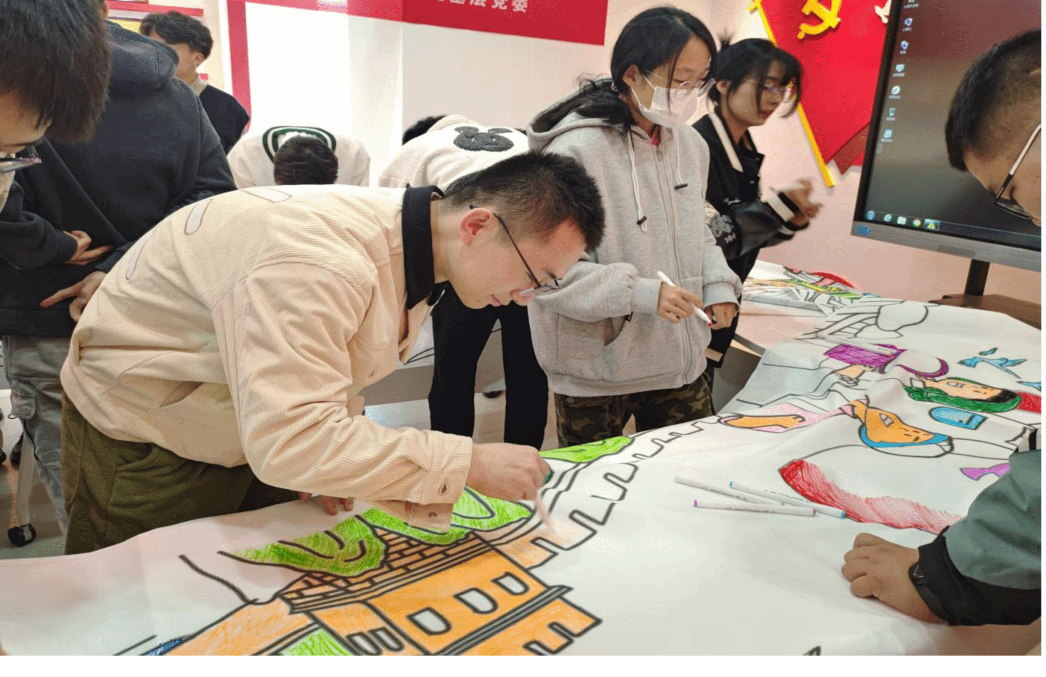 组织员曹香老师与同学们一起同绘画卷,现场氛围积极向上、浓烈而喜庆。