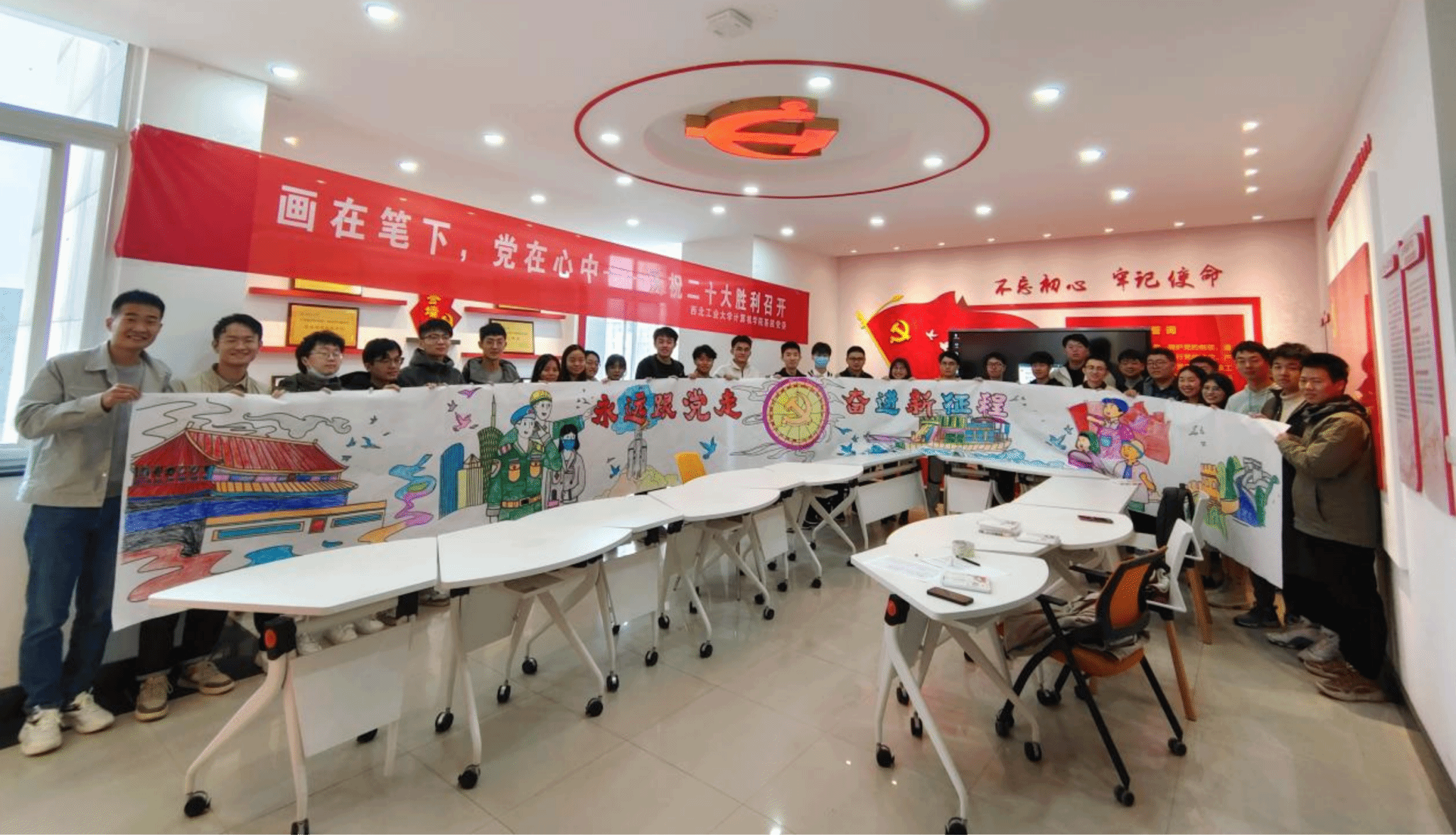 楼党建活动室开展了“画在笔下,党在心中”——“百米画卷”庆祝党的二十大胜利召开活动。活动覆盖各年级、各支部同学,日韩av