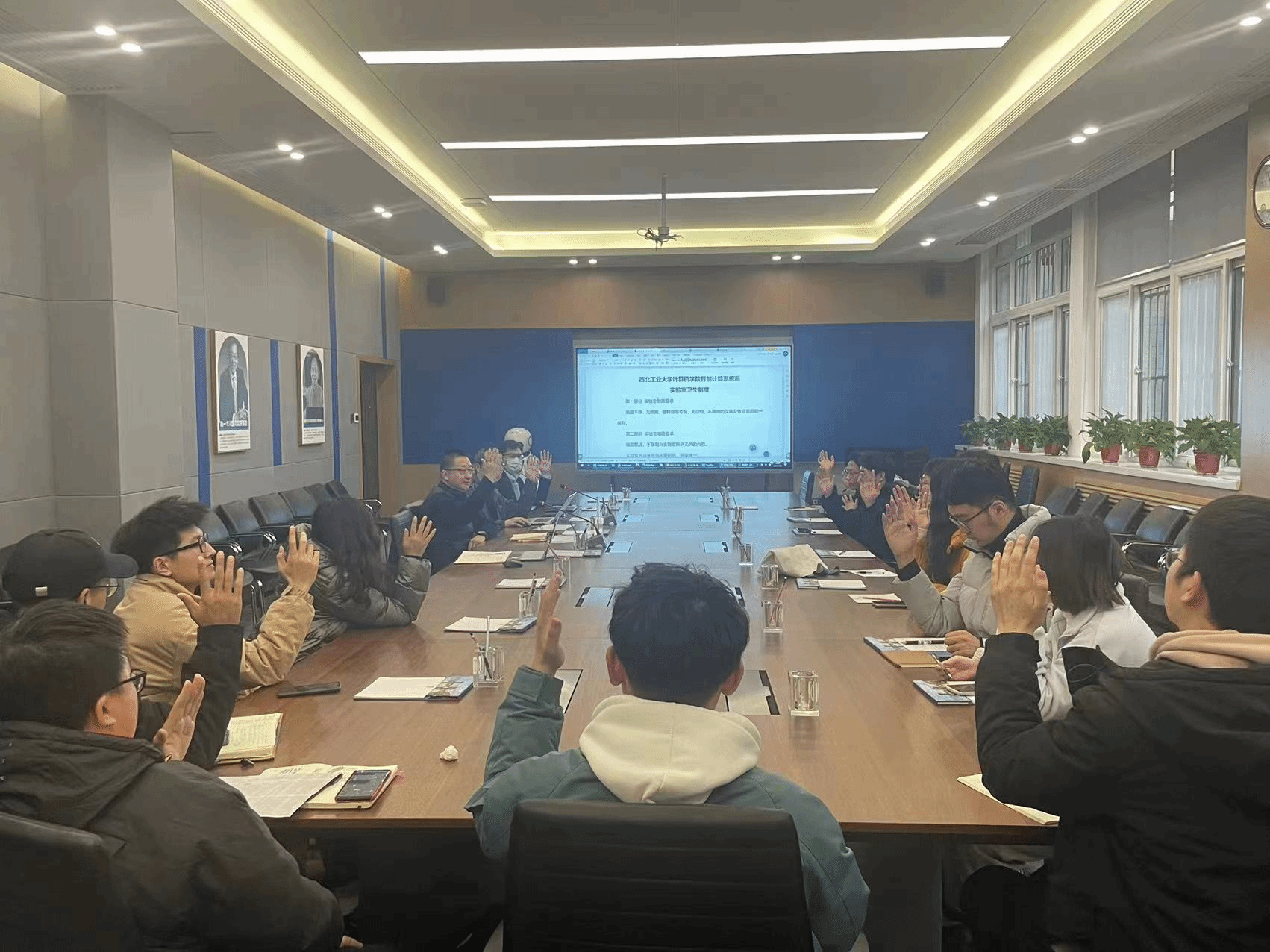 其次,本着“高起点,高标准,严要求”的工作思路,所有代表集体讨论了本次活动的管理制度,包括实验室安全制度和卫生制度。针对智能计算系统系科研工作的具体情况,将安全制度和卫生制度规范化、制度化科学化,旨在通过简明、清晰、有效的工作制度来指导本次活动的开展。参会代表集体表决并通过了相关制度。