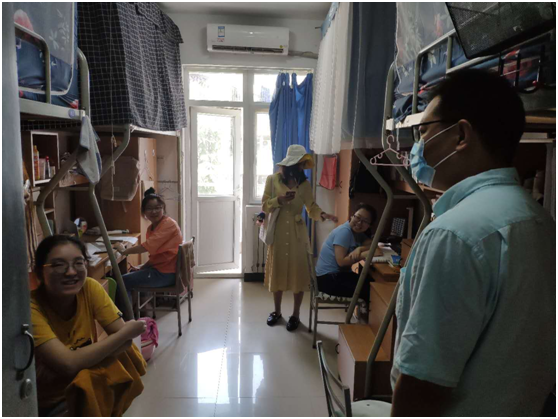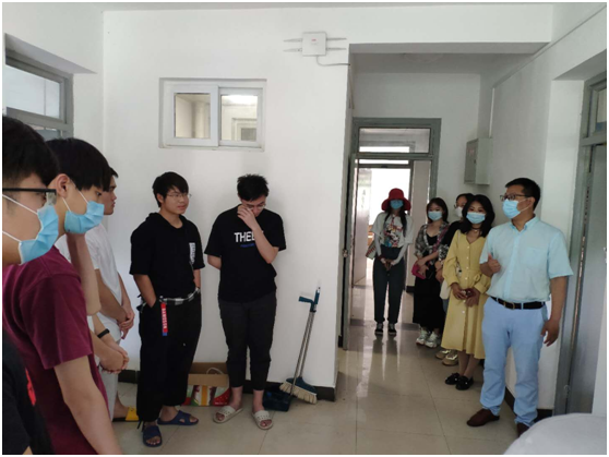 随后万海东一行人走访了学生宿舍,询问了同学们返程情况和在校生活所需,叮嘱同学们理性看待防控举措,自觉遵守学校疫情防控管理制度,增强卫生防疫意识和自我保护能力。在校期间勤洗手、戴口罩、避免人群聚集,保持宿舍卫生,养成健康的生活方式。