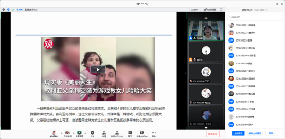 张洪英老师的分享生动幽默,通过频繁使用与大学生有共鸣的词语和话题,如推荐同学们使用微信读书的组队功能,不开心可以和同学、朋友“吐槽”等,很快与同学们拉近了距离,把大家的情绪调动了起来。