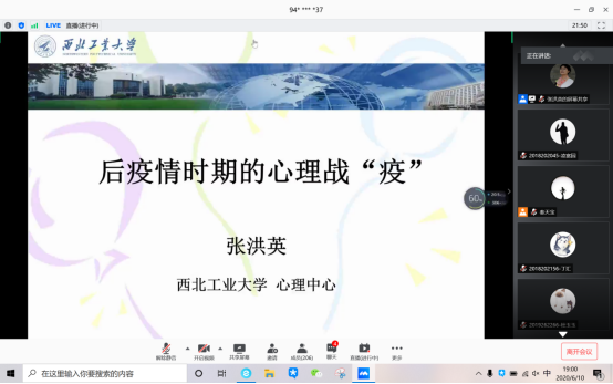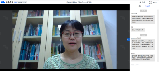 心理健康教育中心主任张洪英副教授,开展了题为后疫情时期的心理战“疫”的讲座。本次讲座主要围绕大学生常见的心理问题及应对方式、“后疫情时期”大学生该如何调节心态、舒缓心情等方面进行分享。本次讲座采用线上方式,使用腾讯会议和腾讯会议直播双通道,可以支持足够多的学生参与到本次讲座中。