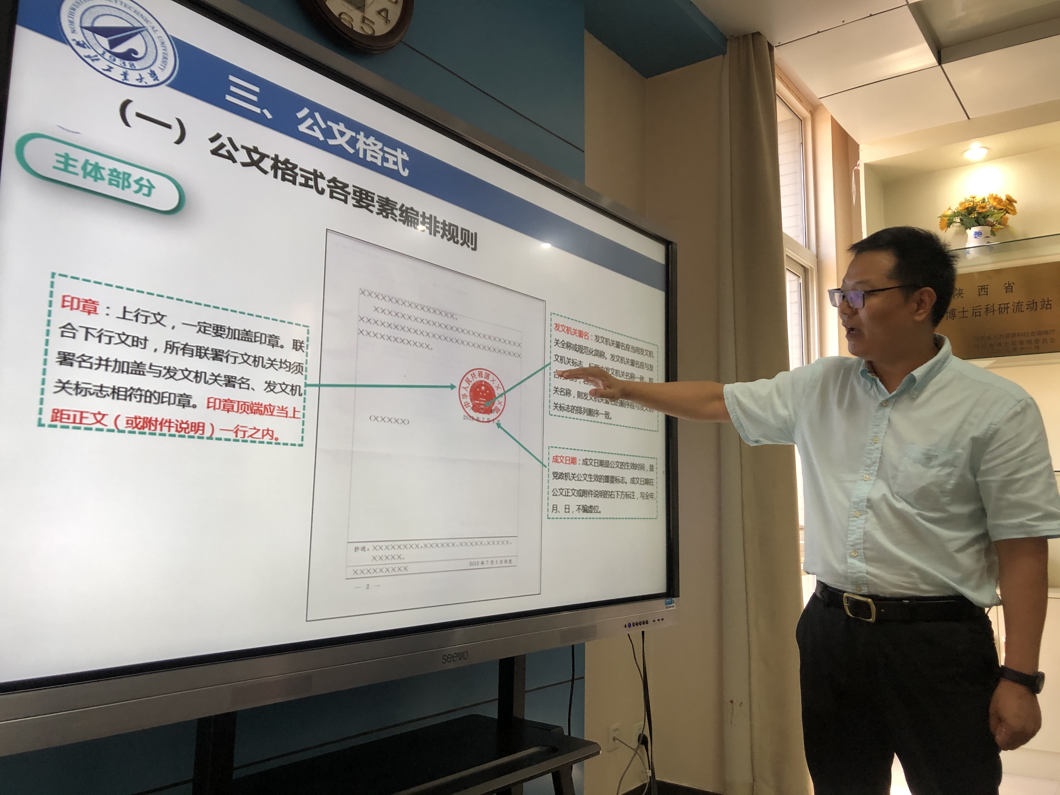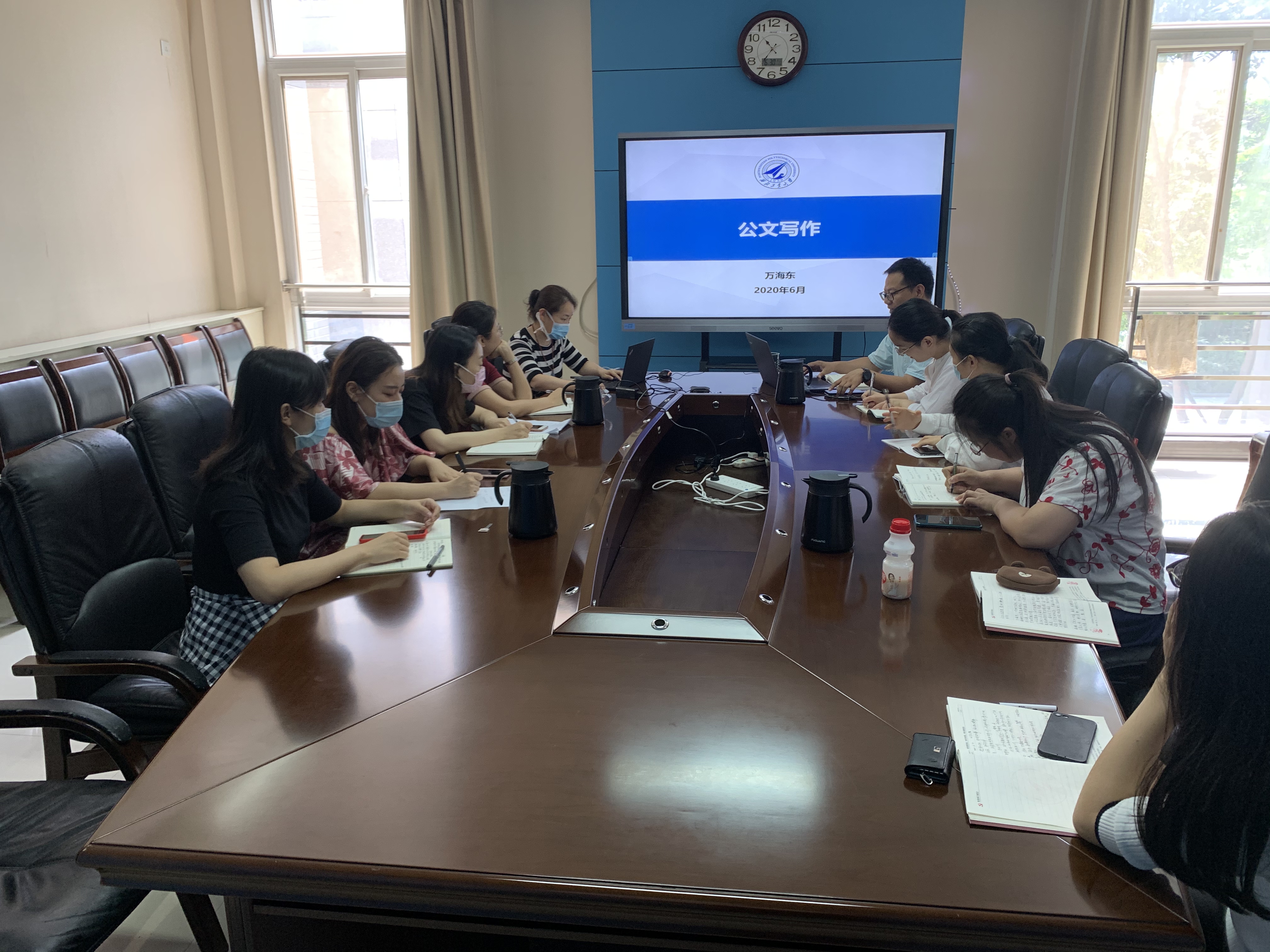 党委副书记万海东开始了第一讲,为全体院办人员讲解“公文写作”。