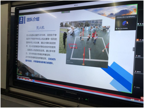 接着,我校机器人创新实践基地的学生代表宋英杰为思源实验学校的学生们做了机器人的线上展示。宋英杰同学以远程视频的方式为学生们展示了多种智能机器人的动态演示,并以PPT的方式对演示中的机器人进行了讲解。思源实验学校的学生们认真观看并进行实时互动。