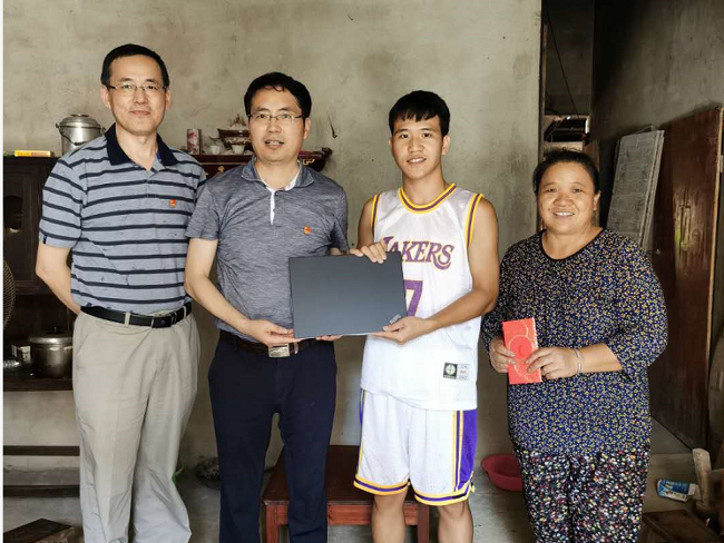 向该同学捐赠笔记本电脑一台和1000元大学助学金,并鼓励该同学:在大学期间应更加努力学习,多学本领,开拓视野,将来毕业后能够带动大田村的村民们共同致富。