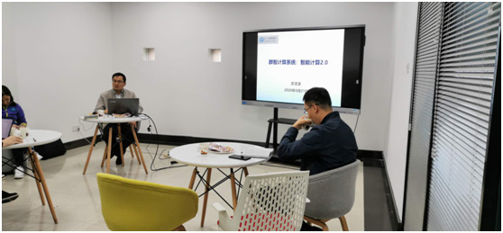 在报告分享环节,於院长从群智能体的研究背景及特性、群智计算系统的研究现状、科学挑战及研究内容等几个方面进行介绍,分享了自己的思考和见解。