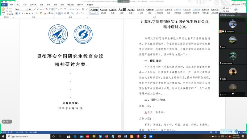 领导班子成员分别参与了各系的研讨。本次会议采用线上与线下相结合的形式进行,学习了全国研究生教育会议精神,并围绕研究生思政工作建设,优化学科布局,研究生教育创新内涵式发展,提升导师队伍,完善人才培养质量体系等十大议题进行了深入的讨论。