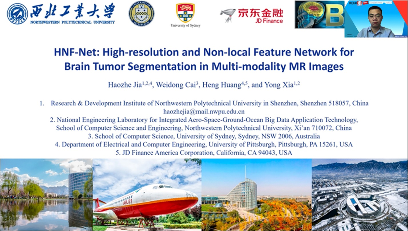 图3. 贾灏哲通过视频在MICCAI 2020 Workshop on BraTS上介绍上述研究成果