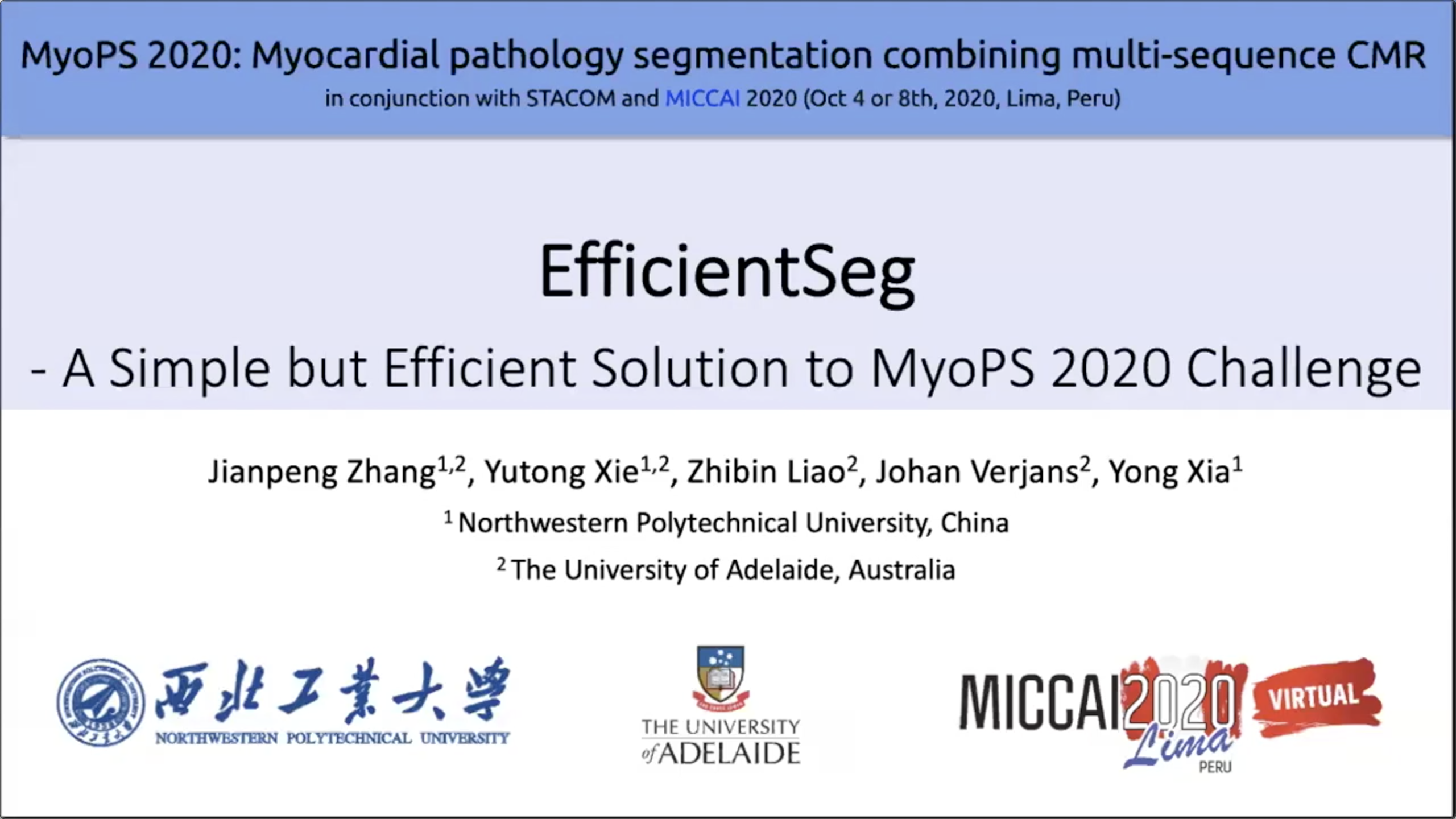 图4. 张建鹏通过视频在MICCAI 2020 Workshop on MyoPS上介绍上述研究成果
