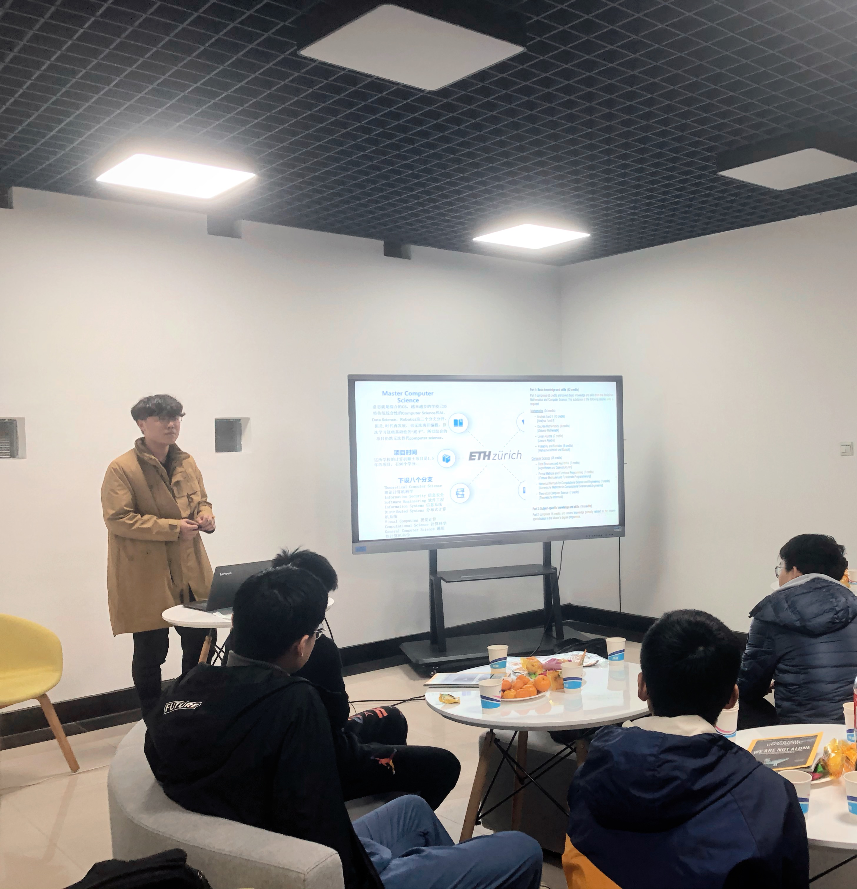 接着,李奇详细的介绍了苏黎世联邦理工大学的排名、规模以及申请条件,帮助大家对国际一流大学的入学标准有初步的认识。让同学们意识到,要想成功拿到世界一流大学的offer,成绩高是最基本的,除此之外还需要全方位的提升自己,包括语言成绩,文书准备,科研和竞赛经历以及实践经历等都是申请的加分项。他着重对该校的计算机科学相关专业进行了详细介绍,向大家显示了该校当前的主要研究方向以及相关研究人员、计算机相关实验室和实验小组以及近期的重大研究成果。