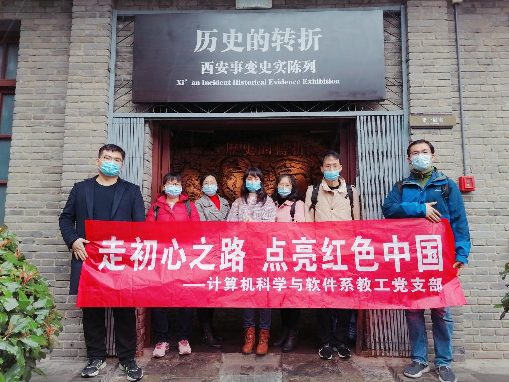 计算机科学与软件系教工党支部一行七人赴陕西历史博物馆、西安事变纪念馆以及八路军西安办事处开展了“走初心之路 点亮红色中国”主题教育活动。