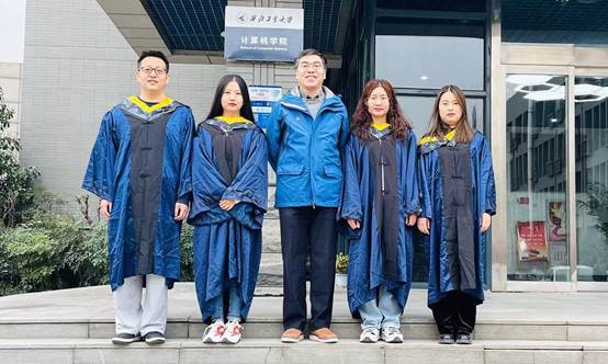 周丽婷同学在完成硕士论文答辩后与其父亲、导师及答辩委员会成员留影