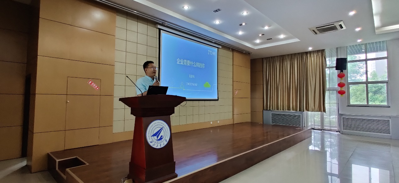 二级讲师黄鑫福应邀担任本次报告会的主讲人。全校200余名师生,中兴通讯人力资源部西北地区招聘经理王琳、秦一菲参加了报告会。报告会由日韩av