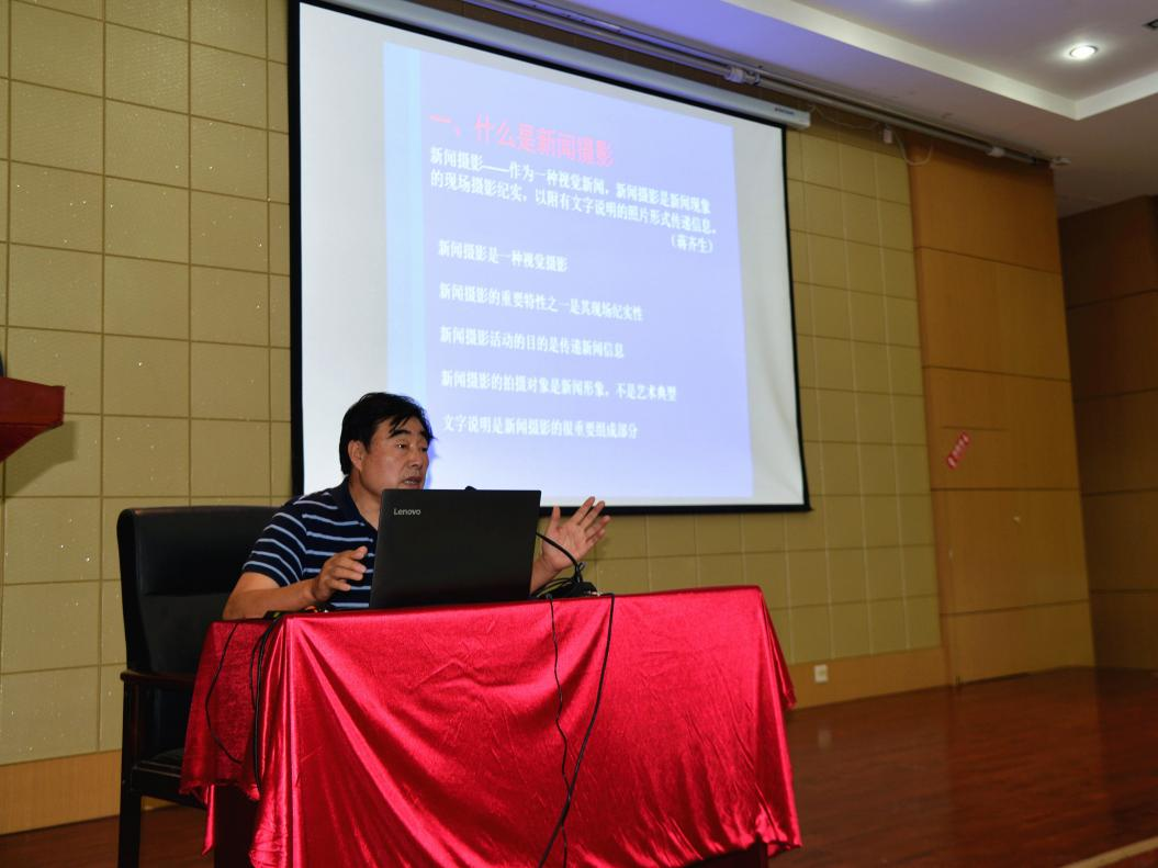 郭友军结合自己50余年的摄影工作经历,从什么是新闻摄影,如何拍出好的新闻图片,艺术、体育等不同题材的新闻摄影注意事项及表现手法深入浅出地为与会师生做了摄影培训。